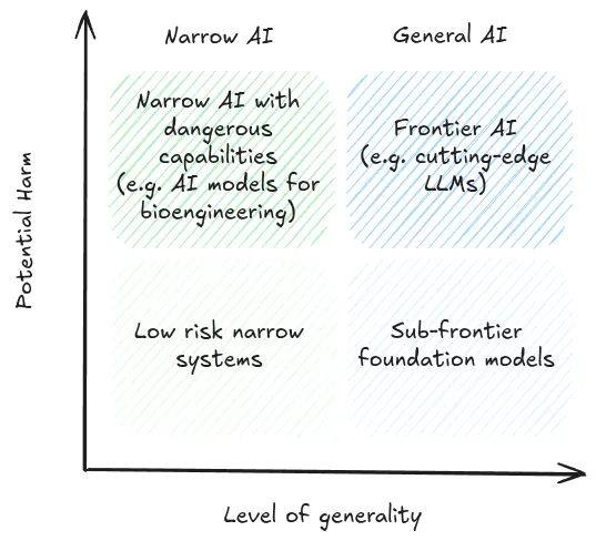 The scope of AI governance is broad, so this chapter will primarily focus on large-scale risks associated with frontier AI. As a reminder frontier AIs are highly capable models that could possess dangerous capabilities sufficient to pose severe risks to public safety (Anderljung et al., 2023). Although in recent history many state of the art advancements have been driven by LLMs or foundation models, frontier AI as a term is not limited to just these types of models. We will examine why governance is necessary, how it complements technical AI safety efforts, and the key challenges and opportunities in this rapidly evolving field. We will focus on the governance of commercial and civil AI applications, as military AI governance involves a distinct set of issues that are beyond the scope of this chapter.