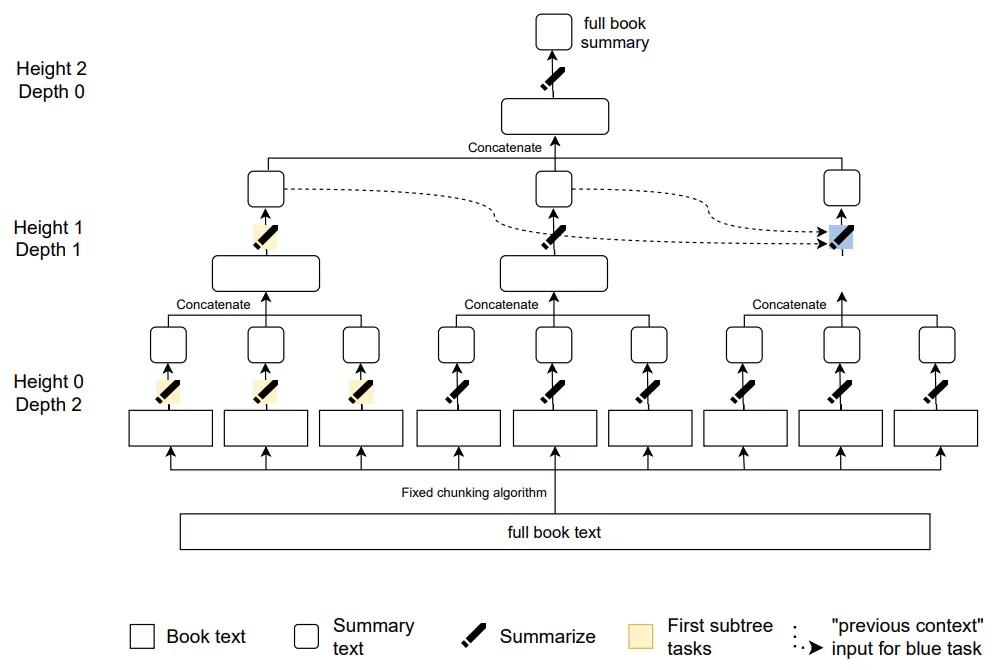 - Composability: We should be able to combine the solutions of individual independent sub-tasks into a coherent and comprehensive solution to the original problem. For example, combining all the independent chapter/paragraph summaries to get a complete summary of the entire book.
