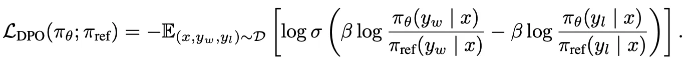 DPO retains the initial supervised fine-tuning step but replaces the subsequent two steps with a single step of fine-tuning on preference data, by using a new clever loss. DPO effectively increases the likelihood of preferred actions while reducing the likelihood of undesired ones, with a single loss: