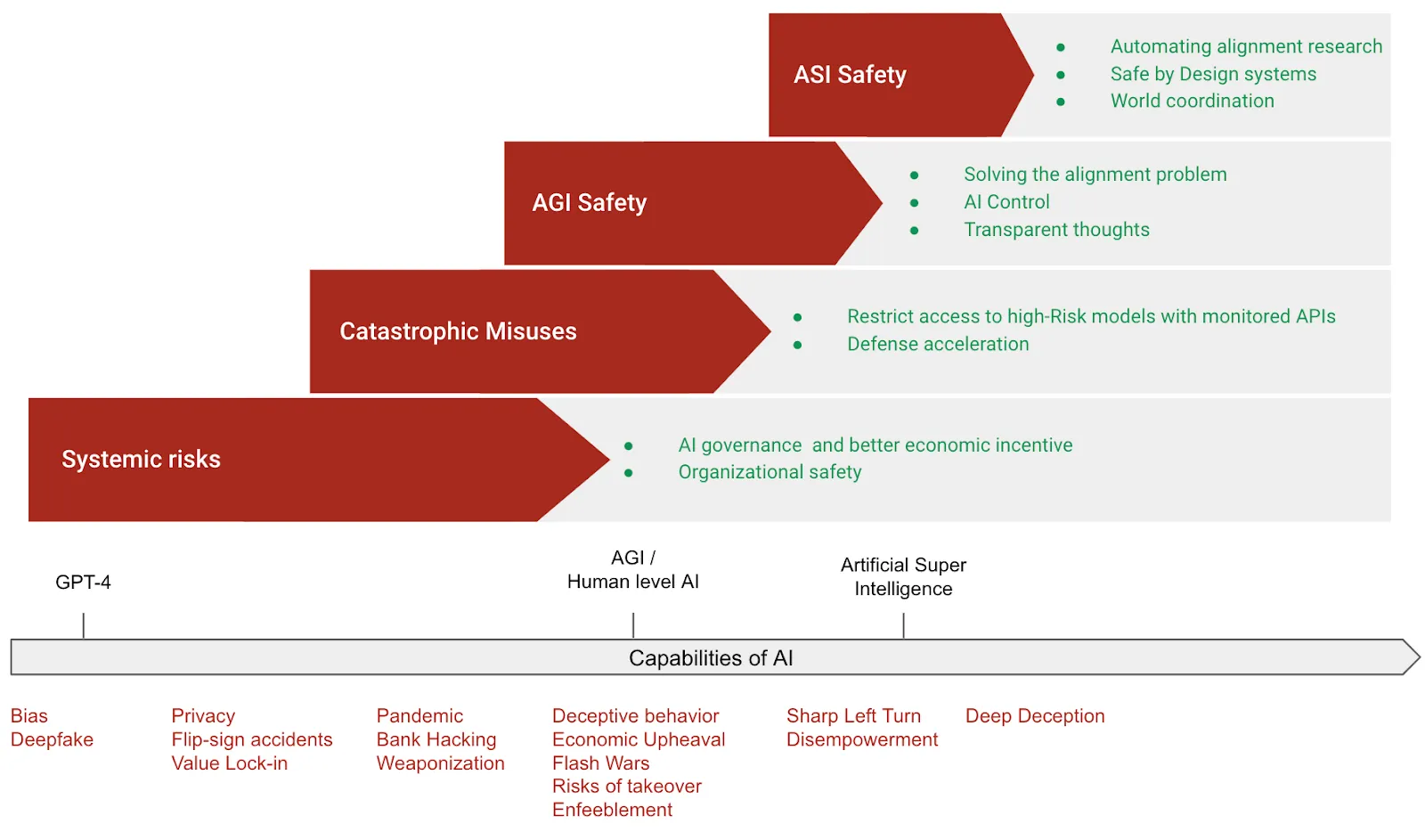 - Security: Standard security practices, such as encryption, access control, data classification, threat monitoring, and anonymization, are prerequisites for safe AI deployment. Although robust security is vital for measures such as protecting model weights, these standard practices are distinct from the novel safety strategies required to address risks like model misalignment or capability misuse.